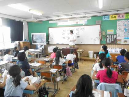 マシュー先生がさした数字を素早く英語で,6年生は答えていました。マシュー先生が次々に素早く数字を指しているにもかかわらず,それに6年生はついていっていました。体は動かしてはいませんが,たくさん運動しているかのような外国語活動でした。