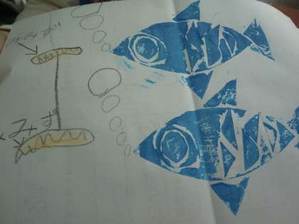 子どもたちは慎重に、そーっと自分の版を刷りました。