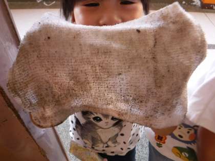 「先生見て見て!真っ黒!」と,見せてくれたのは雑巾でした。廊下掃除の子が,一生懸命に床を拭いてくれています。「先生—,もうゴミ行って来ていい!?」としきりに尋ねるのですが,「ほうきが履き終わるまで,待ってな」と待ってもらっています。