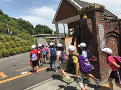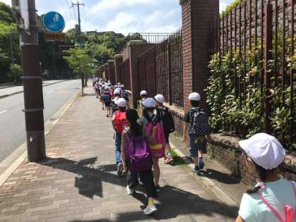 蹴上浄水場に到着しました。ツツジが美しく管理されています。これから、浄水場内の説明があります。