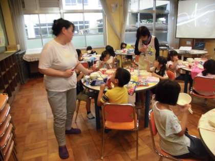 今週は1年2組です。今日は、栄養教諭の泉原先生、給食調理員の近藤さんがいっしょでした。