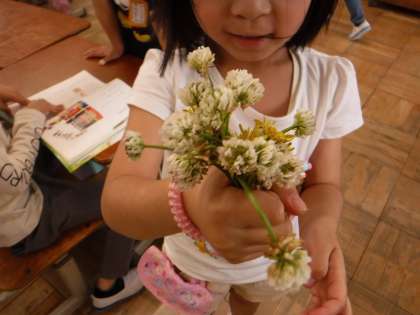 と,1年生は教師によくお花をくれます。本当に折に触れてくれるので,ささやかな喜びを感じる瞬間です。何だか気持ちを分けてくれているようで,1年生の弾けるような豊かな心を感じるようです。