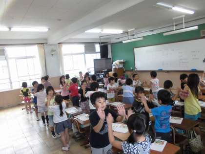 拍子を感じ取るために,歌に合わせて体を動かして歌いました。体を動かして何回も歌うことで,拍子を感じ取ることができてきました。