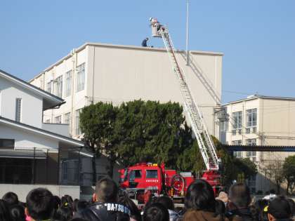 京都に大きな地震(震度6)がおこって,学校の給食室より出火したことを想定して,避難訓練を行いました。子どもたちは,真剣に取り組んでいました。その後の消防署の方々による「救出訓練」や「放水訓練」を見学しました。今日は,訓練でしたが十数前の「阪神・淡路大震災」のことを知っておられる方は,ぜひその時のことを話していただけたらと思います。
