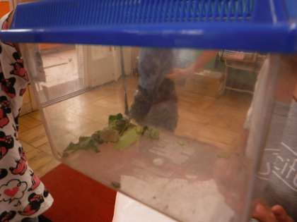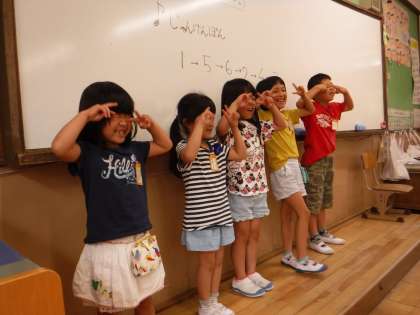 子どもたちが中庭から大きな声で呼びます。夏も近づく6月,いよいよ1年生の好奇心旺盛な目に,バッタが見つかってしまったようです。気の毒なので「逃がしてあげたら?」と言いますが,もう子どもたちは聞く耳を持ちません。とにかく捕まえて観察と,虫かごの中に葉っぱを入れて,朝から帰りまでじっと見つめていました。