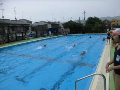 水泳学習が始まりました。3時間目途中には,雨が降り出しましたが,自分のめあてにそって,練習をすることができました。