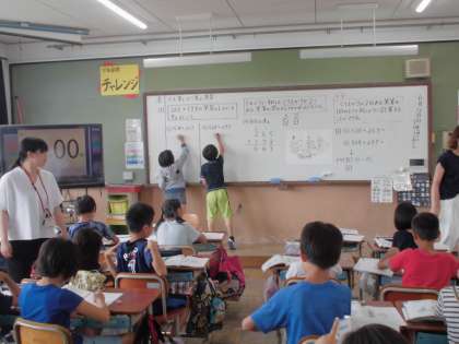 今日の3年生算数は,両クラスとも,繰り上がりが2回ある足し算の筆算の仕方を考える時間でした。繰り上がりが1回の時の方法がよく身に付いているので,スムーズに考えられ,たくさんの練習問題にも取り組むことができました。