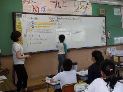 5年生2組で校内研究授業を行いました。子どもたちは,図と数の意味を考えながら学習をしました。たくさんの子どもたちが発表し,日々の学習から頑張っていることが伝わってきました。