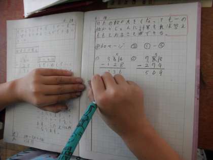 百の位までの引き算の筆算の仕方を学習しました。定規をしっかりと使って学習することができていました。
