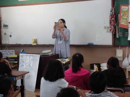 今日は6年生と4年生への学校司書による本紹介がありました。学年の子ども達が興味を持ちそうな本や,興味を持ってほしいと思う本を司書が選んで,あらすじを紹介しました。