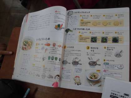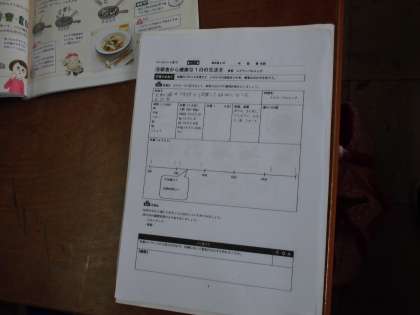 6年生家庭科では,調理実習にむけての学習を進めています。5種類ぐらいの野菜を刻んで,「彩り野菜炒め」を作ります。作業の手順を調べていました。火の通りにくいものから炒めたり,硬い野菜はうすく切ったりするのですね。