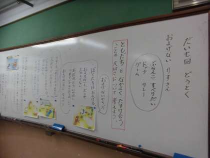 道徳の教科書とノートを使いながら学習を進めています。「およげない りすさん」の教材をもとに『友達と助け合うことの大切さ』について考えました。ノートに自分の考えを書きながら,友達と助け合うことの良さを子どもたちは考えていました。