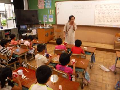 昨日のはみがき巡回指導に引き続き,各学級にてカラーテストを実施しました。歯垢を赤く染め出す錠剤を使って,どこに磨き残しが多いか確認しました。連日の歯みがきセットやタオルの用意など,ご家庭のご支援どうもありがとうございました。