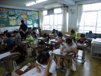 教務主任が専科で授業に入って行った「分数×分数」のテストを行いました。問題をしっかりと読んで取り組んでいました。