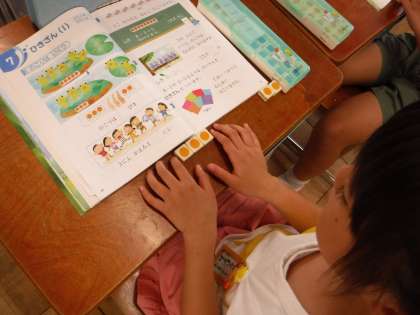 算数科では「ひきざん(1)」の学習に入りました。まずは挿絵,数図ブロックの操作を通して,「のこりはいくつ」なのか考えました。たくさんの子がひき算の計算を説明することができました。