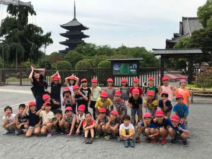 東寺の塔の前で記念写真を撮りました。