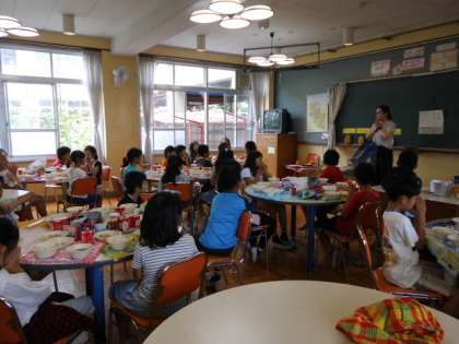 給食前に主食について学習しました。