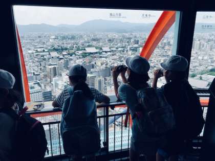 京都タワーの展望台に上がりました。京都のまちの様子がよく分かります。北,東,西が山に囲まれた盆地だということが実感されます。