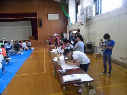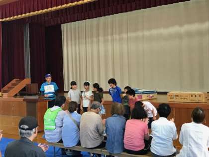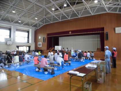 最後には,各担当ごとに訓練行ったことの発表が行われました。小学校代表の子どもたちも自分たちが訓練で担った役割の報告をしっかりと発表していました。また,非常食やお茶の配布の準備も率先して手伝っていました。代表の子どもたちが自主的によく動いてくれた訓練でした。