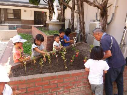 中間休みには井嵜先生と一緒に校庭の花壇にホウセンカを植えるお手伝いをしていました。学校にまた緑が増えました。心も豊かに夏を迎えてほしいと思います。