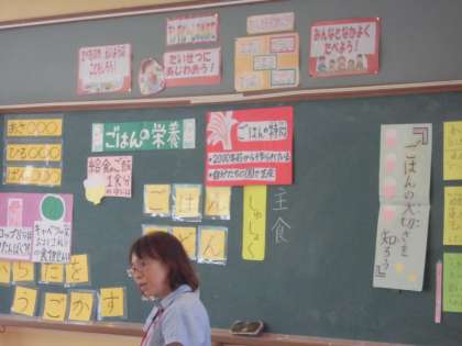 今日の4時間目は,栄養職員による食に関する指導がありました。「ごはんの大切さについて知ろう」というめあてで,体を動かすエネルギーとなる,朝ごはん,昼ごはん,晩ごはんをしっかり食べることの大切さについて考えました。