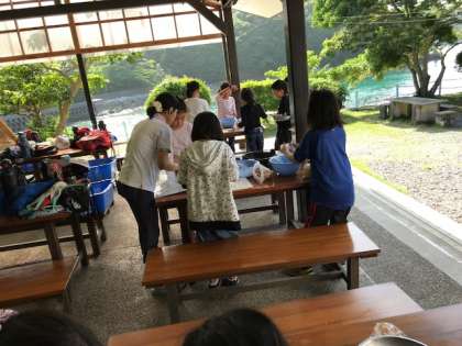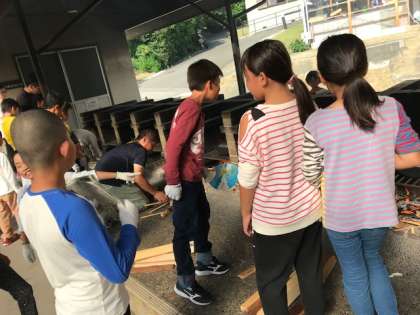 調理もでき,炊き始めました。けむりとのたたかいです。