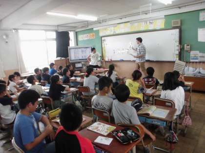 今日もマシュー先生に来てもらって,"Can you play 〜?"の表現に慣れ親しみました。先生のできること,できないことを聞いて,子どもたちは楽しく英語を聞き取っていました。
