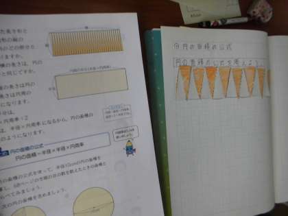 算数科で,円の面積の求め方について学習をしました。円を半径で等分して重ね合わせることで,求め方について考えることができました。