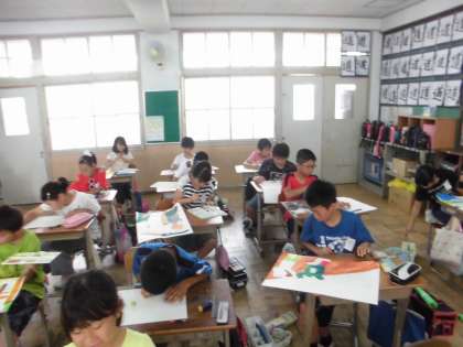 周りの色とのバランスを考えながら,じっくりと彩色をしています。