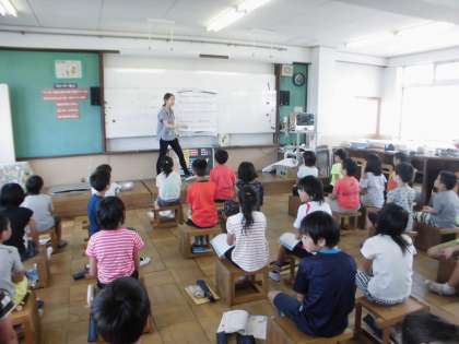 グループで曲の感じを考え,自分たちのイメージに合った楽器を選んで「いろんな木の実」の合奏をします。グループでたくさん話し合いました。