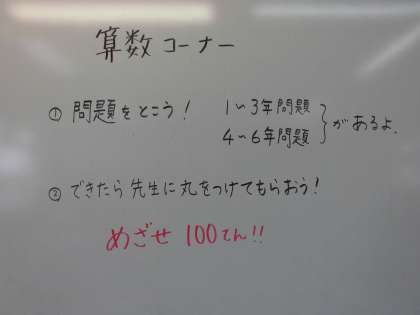 算数コーナーです。担当は,久保先生と西脇先生です。