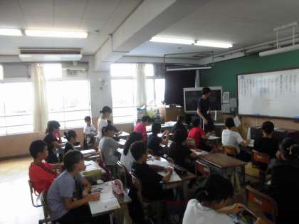 生活リズムの大切さについて考えました。携帯電話を持つ前に生活リズムを崩さないことを決めて持ちはじめた登場人物について話し合いました。教材では,やはり生活リズムが崩れてしまい,携帯電話をもたないことを決め,携帯電話のせいにするのではなく,自分自身が携帯電話を持つには早くて弱いところがあることに気付くような登場人物の様子が描かれていました。とても身近に感じる子もいたであろう話し合いができました。
