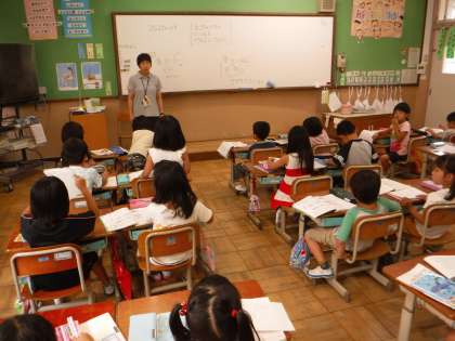 国語科「おおきな かぶ」の音読発表会に向けて,グループ毎に読み合わせをしています。身振り手振りも付いて来て,元気な声が教室に響いています。