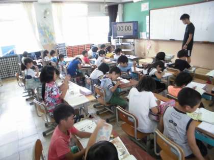 物語の様子をしっかりつかみ取るために,クイズづくりを通して学習しています。「だれが,いつ,なにを」などをしっかりとつかむために,物語を読んでいます。