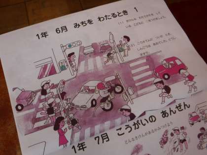 生活科「なかよしみつかる行き帰りの道」や,安全ノート「道を渡るとき」「校外の安全」などを活用して,地域での過ごし方を学習しています。ルールやマナーを守って,自身の身の安全を守ったり,気持ちの良い挨拶をすることを目指しました。
