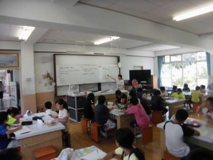ツルレイシが夏にどれくらいの伸びをするのかを予想し,調べる計画を立てました。気温と成長の関係について学習をしています。