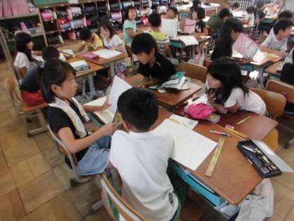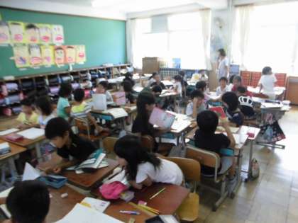 お話を読んで,時間,場所,人物の出来事をもとにしたクイズを出し合いました。子どもたちがそれぞれ考えたクイズをお互いに交流し,楽しく学習できました。