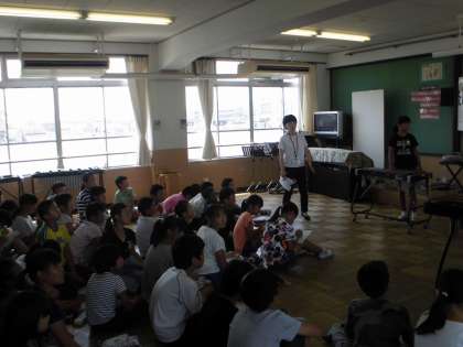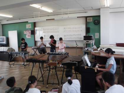 各グループで練習してきた合奏を学年で交流しました。楽器の配置や楽器の種類など,各グループの工夫が見られました。