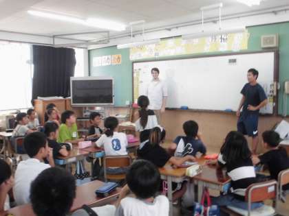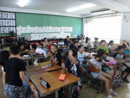 マシュー先生と最後の外国語活動になりました。好きなものを言い当てながら,たくさん英語に慣れ親しみました。グループ対抗のゲームで大変盛り上がりました。