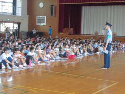 右京警察署の方,右京防犯推進委員会の椿原さん,地域委員さんの方々に来ていただき,町別集会を行いました。それぞれお話をいただき,集団下校時には,下校時にちかくにある子ども110番の家を確認しながら下校しました。