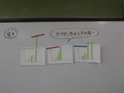 ホウセンカがどれくらい成長してきたのかをグラフにしました。また,成長カードに記録を残しました。