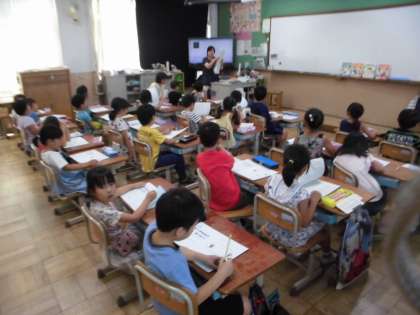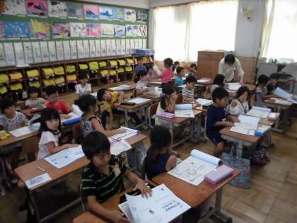 夏休みの宿題について,観察カードや宿題の冊子を確認しました。1年生にとっての初めての夏休み。休み期間中も学習の習慣を身に付けて,しっかりと宿題をがんばってきてほしいと思います。