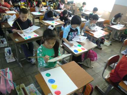 これからは色をまぜたり、筆の使い方などを学習していきます。