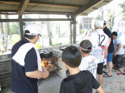4〜6年生の子どもたちは,お米を洗って,飯盒でご飯を炊きました。その間,1〜3年生の子どもたちは会議室でお絵かきをして待っていました。