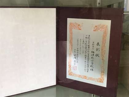 歯・口の健康に関する図画,ポスターの表彰を2名の児童が受賞しました。また,学校歯科保健優良校表彰の部では,梅津北小学校が「特別表彰」を受賞しました。これは,う歯罹患率の低さと口腔内の健康を表彰されたものです。これからも,健康によいものをよくかんで食べて,食後の歯磨き,フッ化物洗口などにもがんばって取り組んでいきましょう。