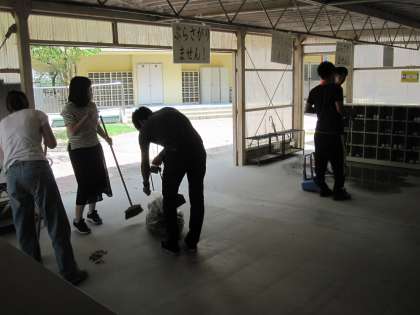 夏休みの最終日,子どもたちが気持ちよく登校できるように,下足箱や廊下を掃除しました。