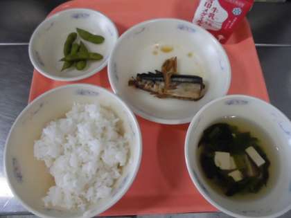 麦ごはん・牛乳・さんまのかわり煮・えだ豆・すまし汁