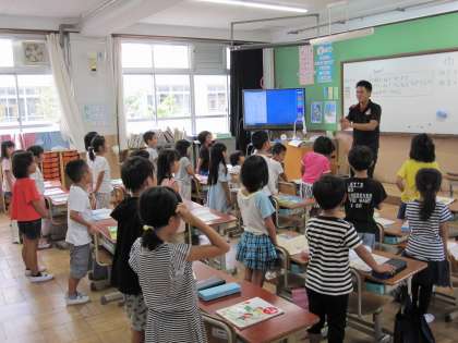 リズムにのって体を動かしながら,歌を楽しんで歌っていました。おもいっきり体を動かしてとても楽しそうでした。