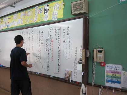 教材「避難訓練」を通して,普段から当たり前のことを大切にしていくために,どんな心構えが大切なのかを話し合って考えました。