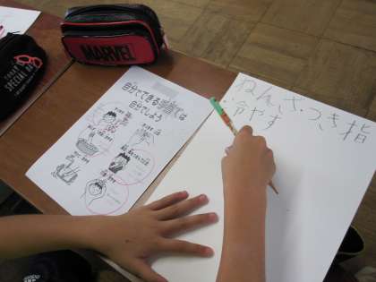 今年度の運動会に向けて,5・6年生で運動会係活動を行いました。実行委員では初めの言葉などを考え,救護係ではポスターを作成していました。